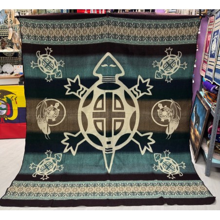 Couverture native en 70% acrylique et 30% laine d’alpaga, fabriqué artisanalement en Équateur, ( motif tortue ) chaque article est unique et travaille avec le savoir-faire traditionnel.
