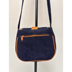 Sac bandoulière en cuir de vachette et tissu ethnique. Fabriqué artisanalement en Équateur au pied de la cordillère des andes. Taille 23cm de largeur et 20cm environ de hauteur.