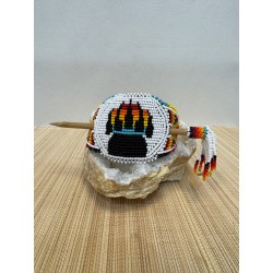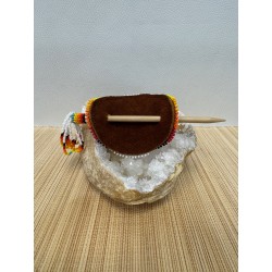 Chaque pièce est unique et réalisée avec minutie à partir de petites perles colorées, assemblées une à une pour créer des motifs vibrants et authentiques. Elles sont montées sur un support en cuir de vachette, offrant à la fois solidité, confort et durabilité.