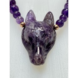Collier tête de loup en améthyste