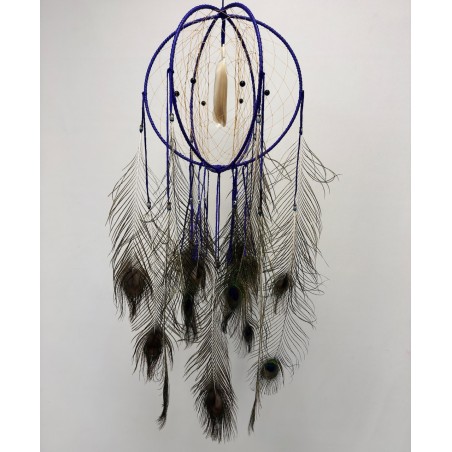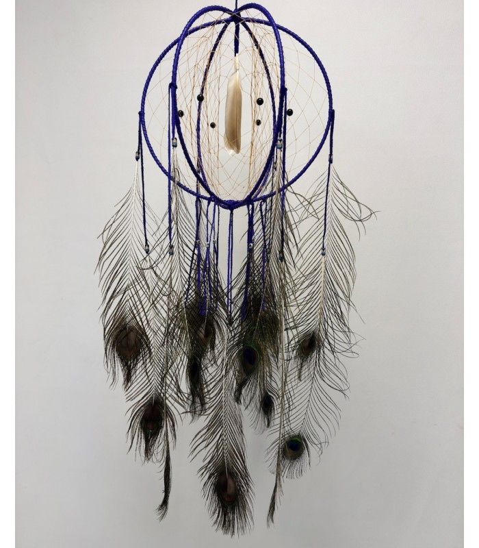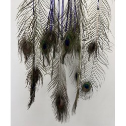 Son tissage délicat met en valeur des éléments authentiques : 20 plumes de paon naturelles, montées sur des perles en céramique, accompagnées de 2 plumes de dinde fixées sur de longues perles en os de buffle. Pour renforcer son caractère unique, 6 pierres d’onyx viennent sublimer l’ensemble, apportant une touche minérale raffinée et une symbolique protectrice.