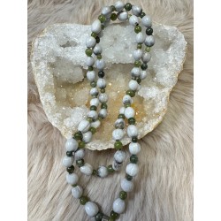Ce collier artisanal unique réunit des matériaux naturels sélectionnés avec soin. Il est composé de 52 graines de larmes de Saint-Pierre (ou larmes de Job) provenant d’Amazonie, associées à 54 perles de jade chinois, pour un équilibre harmonieux entre textures naturelles et énergie minérale.