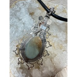 Réalisé en wire-wrapping, ce bijou présente un design filigrané aux formes organiques, inspiré des énergies solaires et des mouvements naturels.