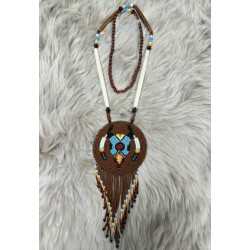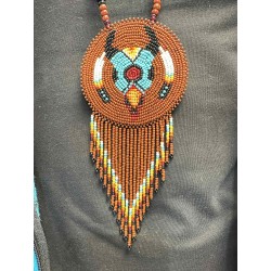 Collier pendentif en perles de rocailles crâne de buffle et pûmes . Fabriqué artisanalement en Équateur dans le village de Peguche au pied du majestueux volcán d’Imbabura. Le village de Peguche est situé au nord de Quito dans la province de Imbabura. Nous sommes ravis de vous proposer de l’artisanat fait main par un artisan d’origine inca.