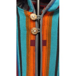 Les motifs géométriques et les couleurs profondes racontent une histoire, inspirée des traditions andines et du travail manuel. Sa coupe ample en taille unique s’adapte naturellement à toutes les silhouettes, tandis que la capuche et la fermeture zippée apportent une touche pratique au quotidien.