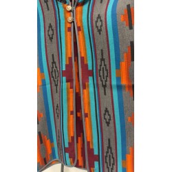 Sa coupe ample en taille unique s’adapte confortablement à toutes les silhouettes. Les motifs géométriques et les teintes vibrantes apportent une identité forte et un style bohème affirmé. Doté d’une capuche et d’une fermeture zippée, ce poncho allie esthétique et praticité au quotidien.