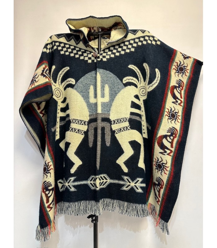 Poncho native mixte confectionné avec un mélange de 70 % d'acrylique et 30 % de laine d'alpaga, entretien: lavage à 30 en machine programme laine et faire sécher à plat. Taille unique.