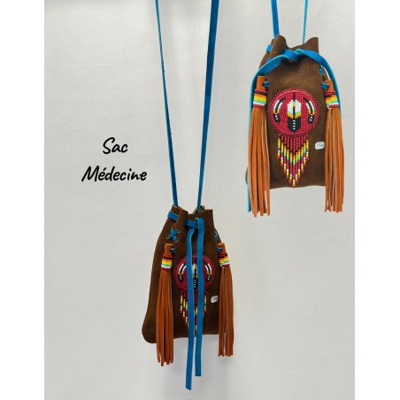 Sac médecine, confectionnés à la main avec cuir, perles et tissus colorés, sont bien plus que de simples accessoires. Dans la tradition des peuples natifs d’Amérique, ils sont considérés comme des objets sacrés utilisés pour garder des éléments porteurs de force, de protection et d’équilibre spirituel.
